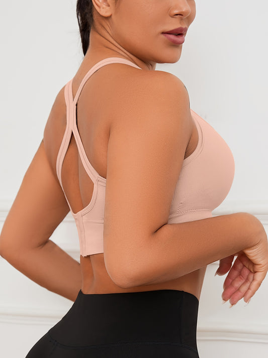 Solid Color Sports Running Bra, Seamless Fitness Top, Women's Activewear ( No Padded)