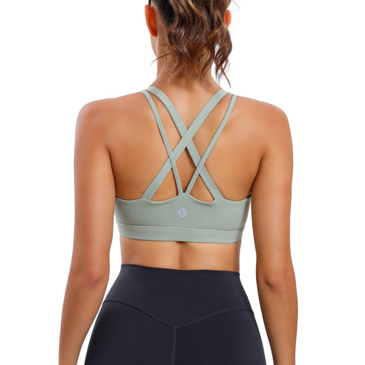 LEOQ Women's Slim Fit Yoga Sports Bra - Elegant Cross-Back Design, Mint Green Nylon Spandex Blend, Removable Pads, Medium Support for Fitness & Yoga, LEOQ