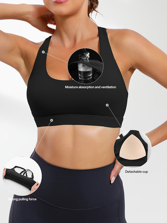 Backless Wireless Sports Bra, Yoga Fitness Workout Bra, Women's Activewear