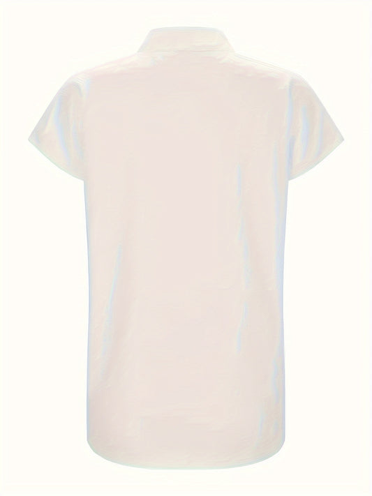 Solid Color Lapel Neck Blouse, Casual Button Front Short Sleeve Blouse For Spring & Summer, Women's Clothing