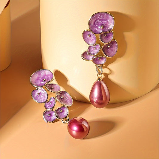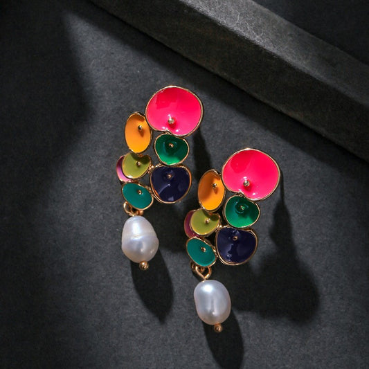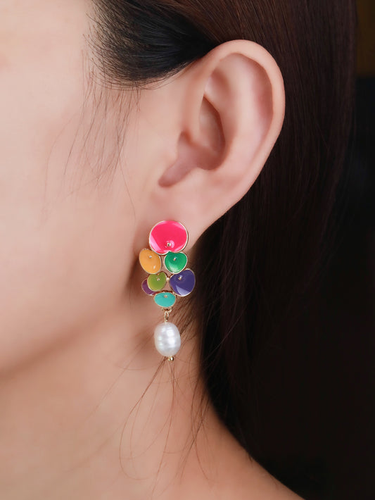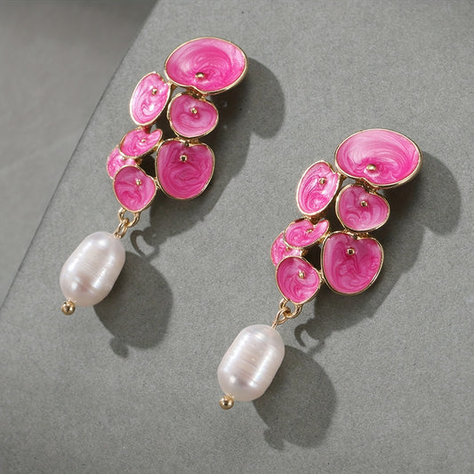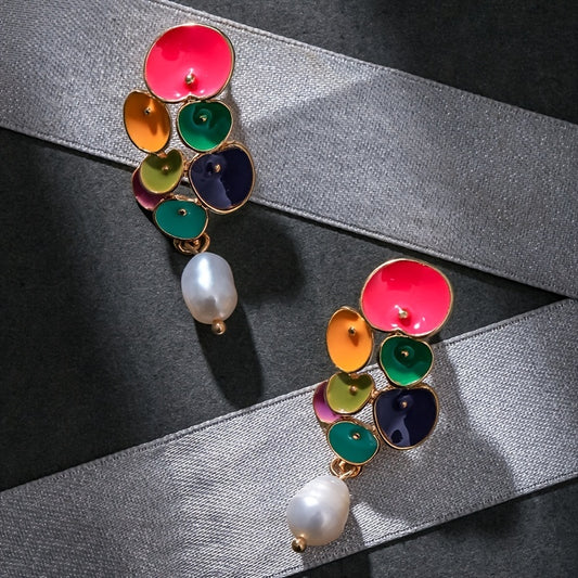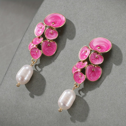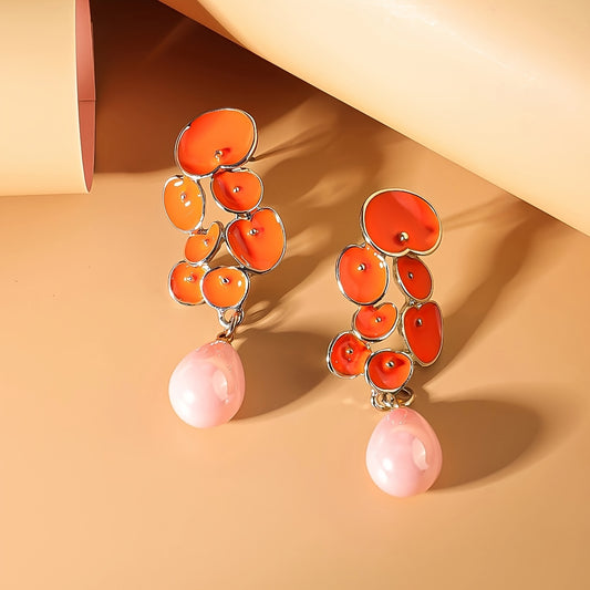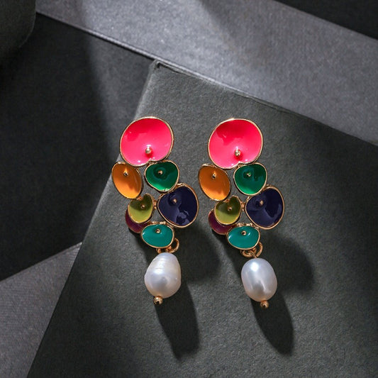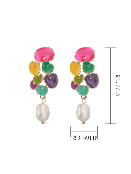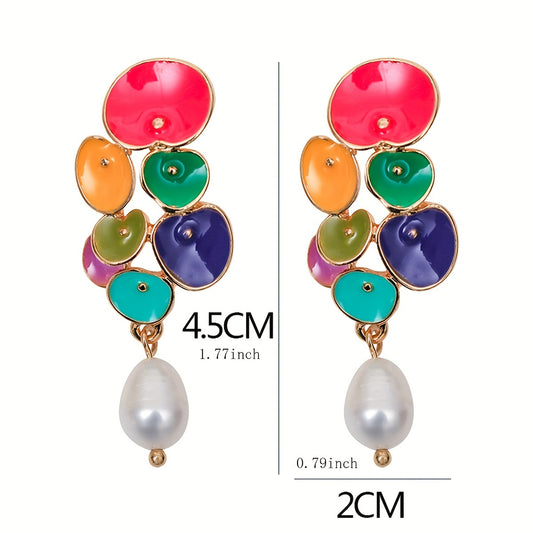 Colorful Delicate Drop Earrings With Faux Pearl Pendant Boho Style Dangle Earrings Sweet Ear Decoration Summer Party Decor