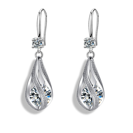 Delicate Teardrop Zirconia Earrings Floral Spiral Earrings Jewelry For Women 1Pair