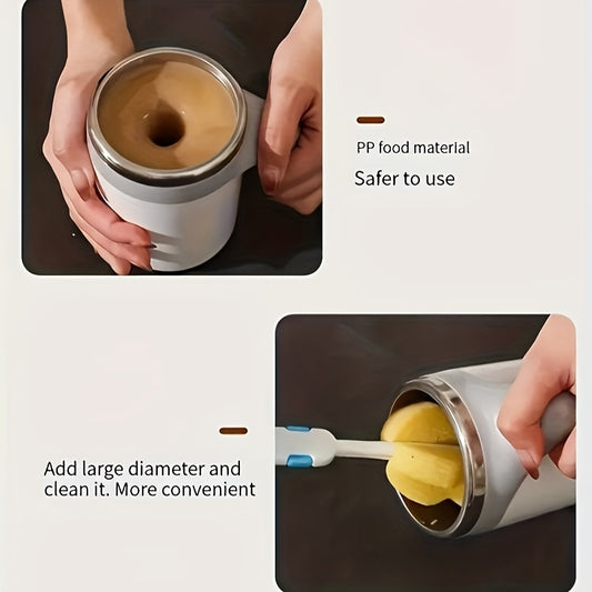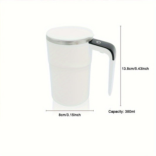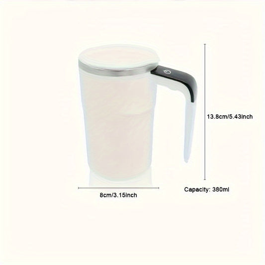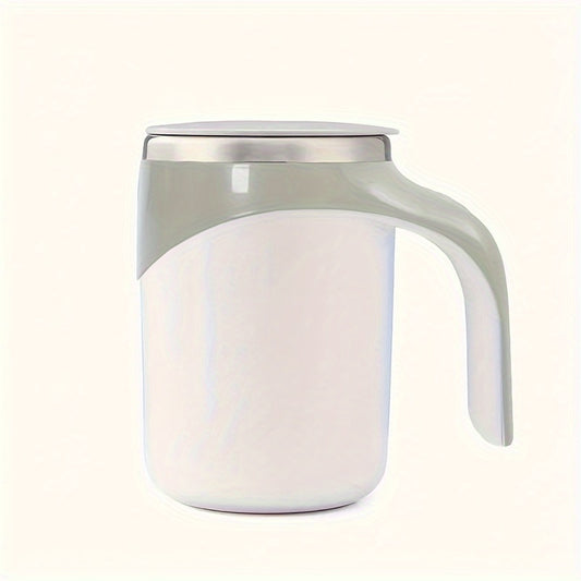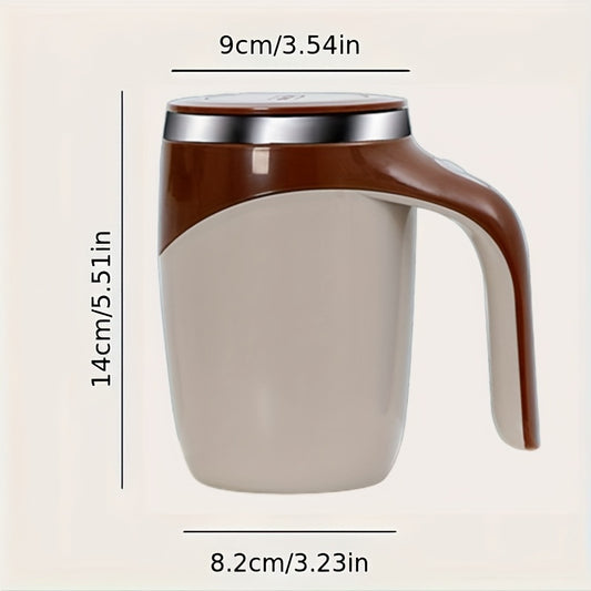 Spill-Proof, Stainless Steel Self-Stirring Coffee Mug - Battery-Powered, Reusable Magnetic Mixing Cup for Home, Office & Travel (AAA Batteries Not Included)