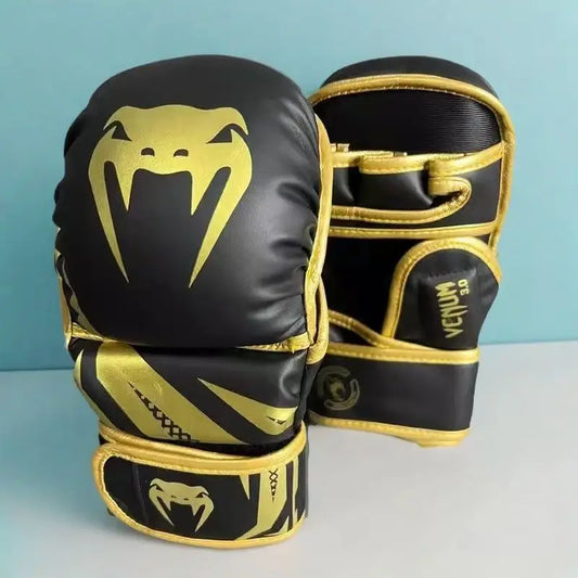 Professional 7oz Matt Black MMA Gloves for Sanda Training Sparring Grappling Muay Thai Printed Pattern Sizes 6oz 8oz for Gyms