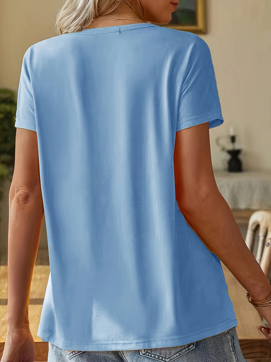 Color Block Crew Neck T-Shirt, Casual Short Sleeve T-Shirt For Spring & Summer, Women's Clothing