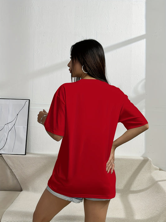 Heart Print T-shirt, Casual Short Sleeve Crew Neck Top For Spring & Summer, Women's Clothing