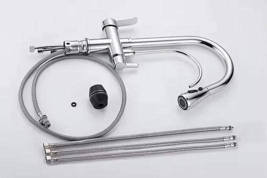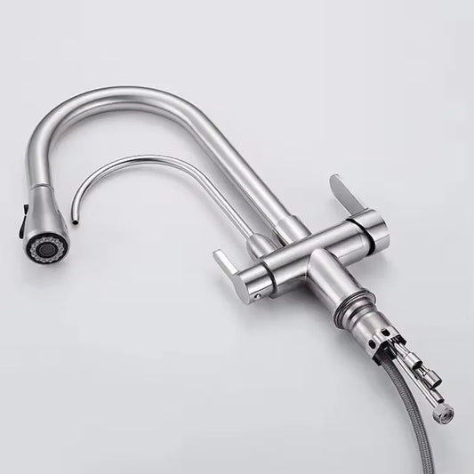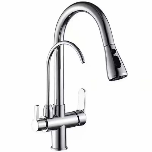Modern Design Three-Way Mixer Kitchen Faucet with Pull Out Sprayer Water Purification Sink Faucet Featuring Brass Ceramic Filter