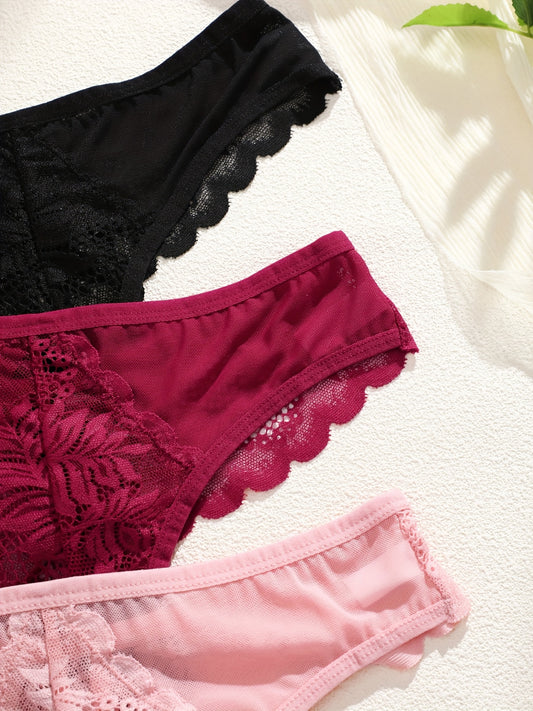 3pcs Women's Lace Trim Sexy Sheer Thong Set, Intimate Wear, Thong Collection, Feminine Lingerie, Elegant Thongs, Soft Lace, Comfortable Fit, Vstring Panties, Lowrise Underwear, Sensual Undergarments, Lingerie Lovers