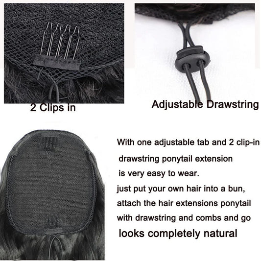 Human Hair Blend Ponytails Clip in Drawstring Long Curly Ponytail Hair Pieces Human Hair Extensions Ponytail for Beauty Women