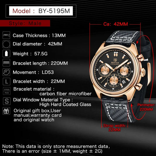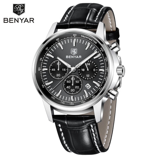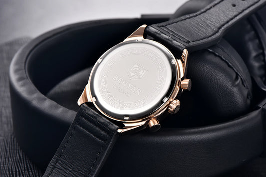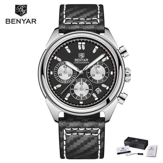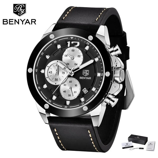 2025 New BENYAR Men's Watches Top Luxury Quartz Wristwatches Chronograph Watch For Man Waterproof Leather Sports Men Gift Clock