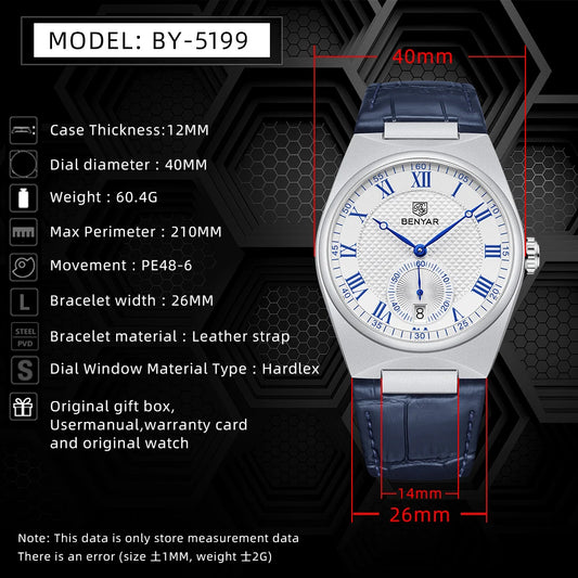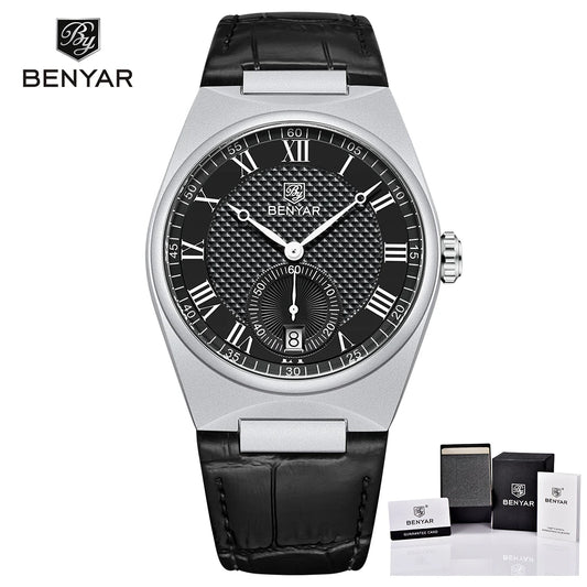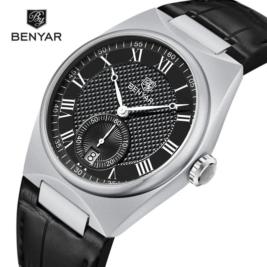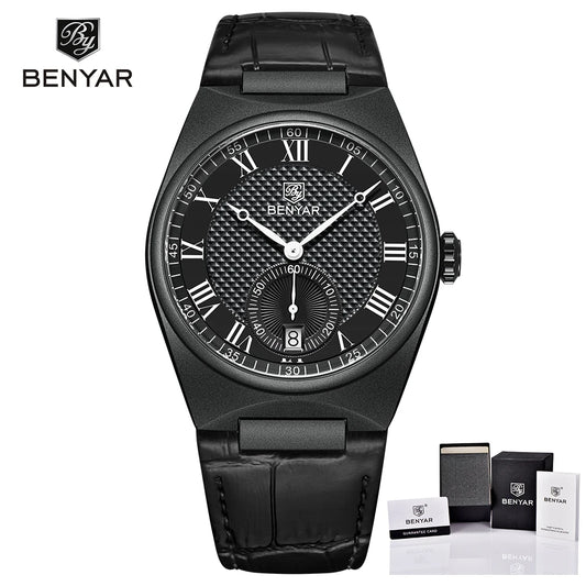 2025 New Men's Watch BENYAR Luxury Quartz Watches For Man Fashion Man Gifts Complete Calendar Top PU Leather Sport Watches Clock