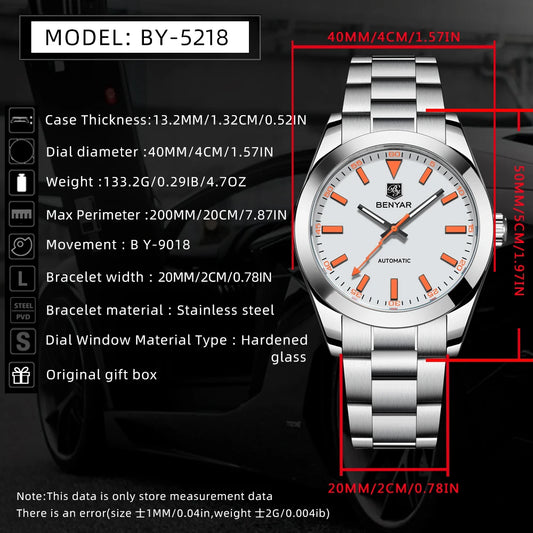2025 New BENYAR Men's Watches Top Luxury Automatic Watch For Men Mechanical Wristwatches Stainless Steel Luminous Clock With Box