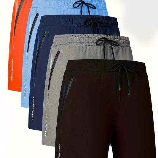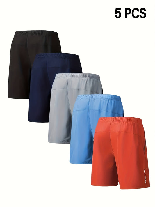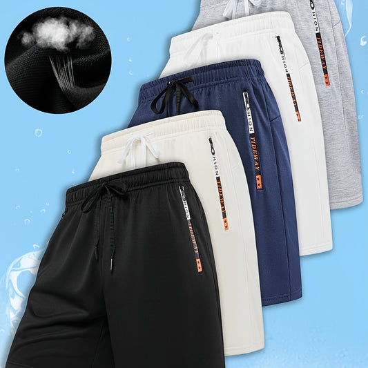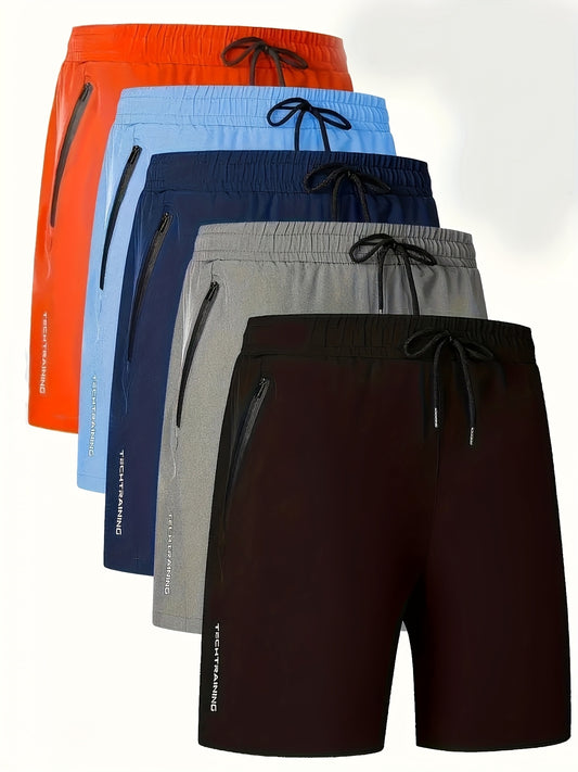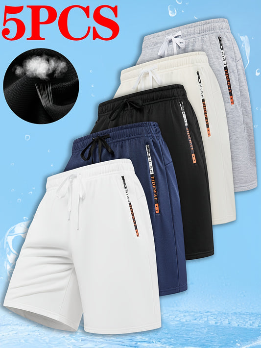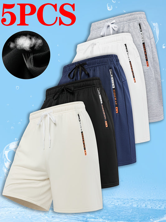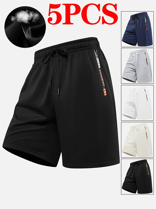 Men'S Letter Print Quick-Dry Athletic Shorts Set of Five - Vibrant Colors (Orange, Blue, Black, Gray, Brown) with Drawstring Waist, Zippered Pockets & Elastic Waistband for Basketball & Casual Wear, Quickdry Shorts, Basketbal
