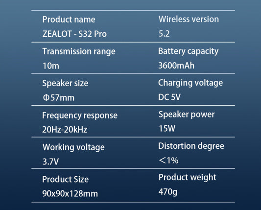 2024 New Style Zealot S32 Pro Wireless Speakers, Featuring Dual Pairing, a 3600Mah Battery, And 12 Hours of Loud Stereo Playtime with Booming Bass, Includes a Type-C Charging Cable for Connection with Mobile Phones, Tablets,