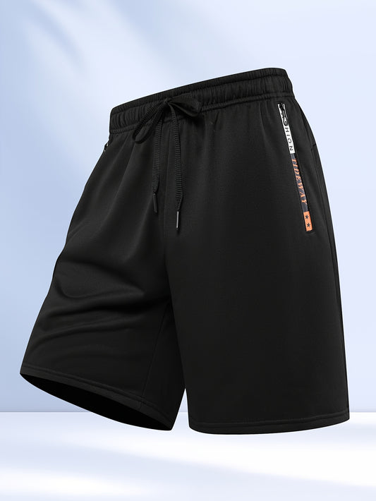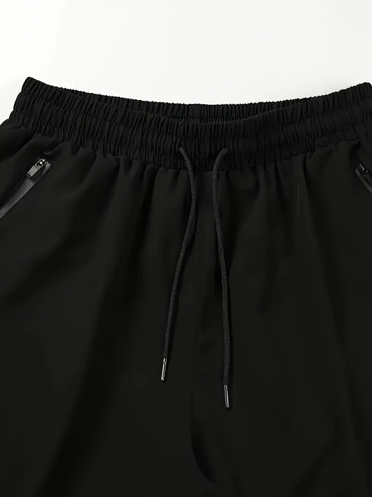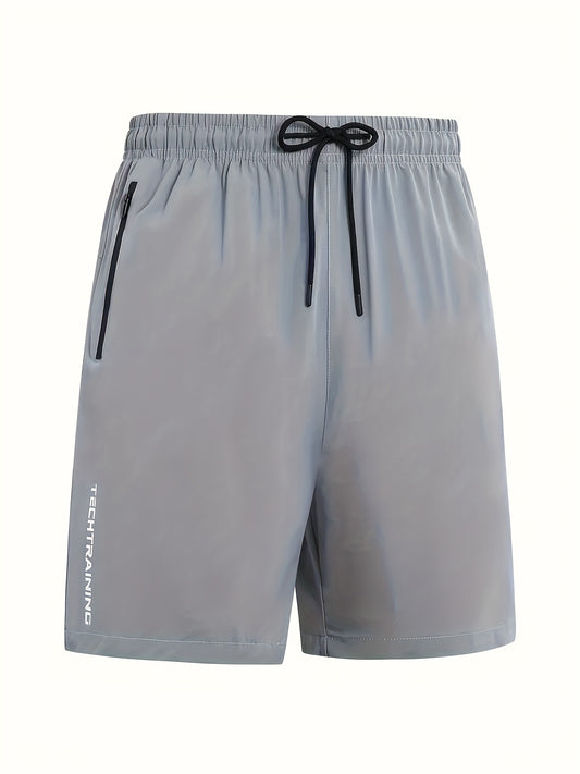 Three-Pack Men's Athletic Casual Shorts, Gym Preferred Solid Color Breathable Quick-Dry Sports Style with Zipper Pockets and Waist Drawstring, Suitable for Outdoor Activities & Fitness Training Reflective Strip Design
