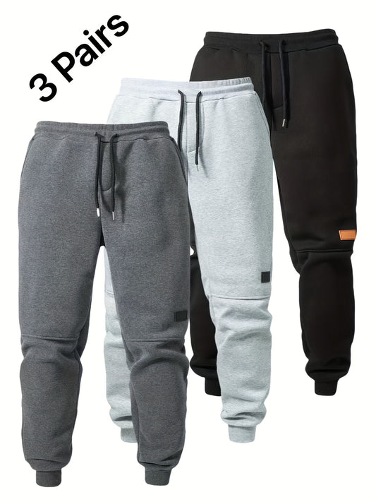 3pcs Men's Casual Athletic Joggers - Durable, Versatile & Warm Polyester Sweatpants with Drawstring Waist, Machine Washable - Black, Dark Gray, Navy Blue