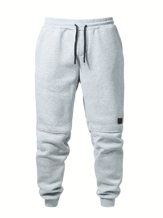 2pcs Men's Casual Pants for Autumn and Winter, Loose Fit Drawstring Sweatpants with Zippered Side Pockets, 4-Season Warm Lined Joggers in Solid Color, Jogging Pants for Men, Activities, Workout Pants, Jogger Style, Sporty Des