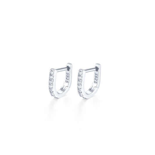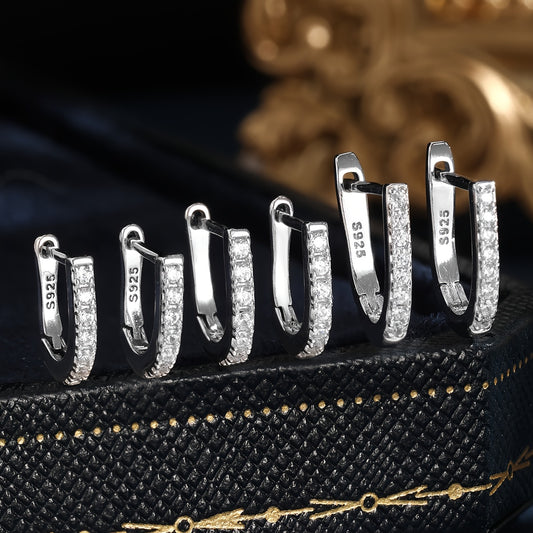 Sterling 925 Silver Jewelry Full Shiny zirconia Decor Hoop Earrings Elegant Minimalist Style Delicate Female Gift