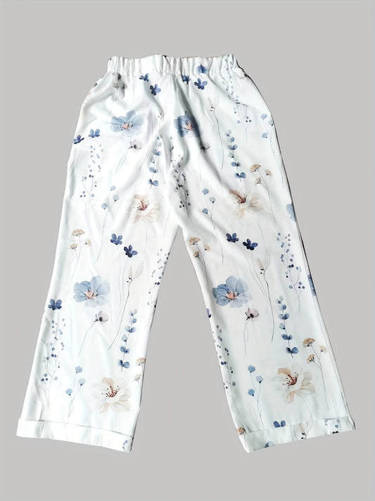 Floral Print Drawstring Straight Leg Pants, Casual Dual Pockets Pants For All Season, Women's Clothing