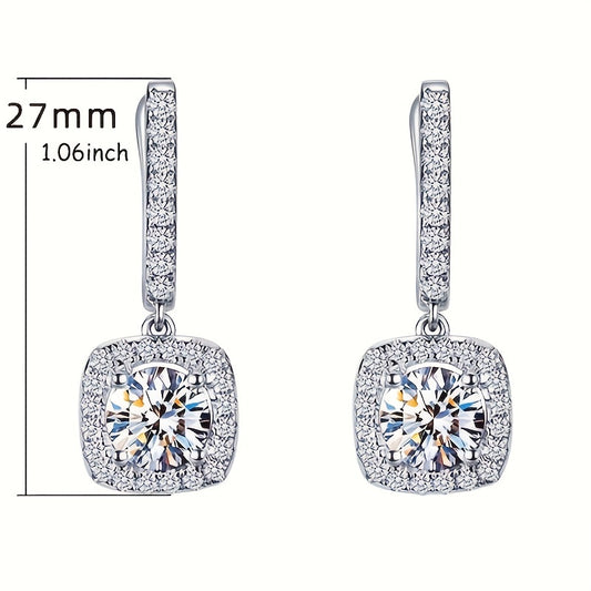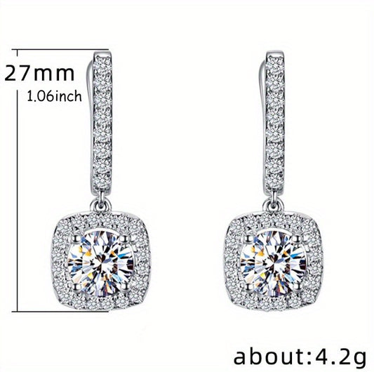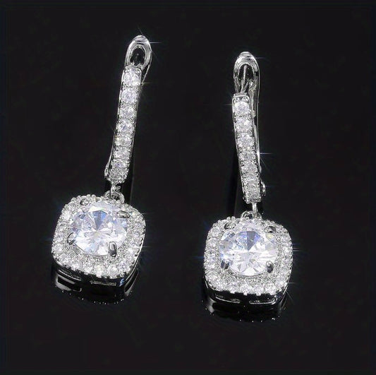 Sterling 925 Silver Ear Jewelry Square Shape Shiny zirconia Decor Dangle Earrings Luxury Style Banquet Party Ear Ornaments