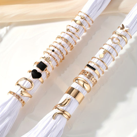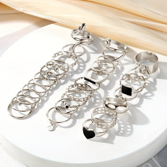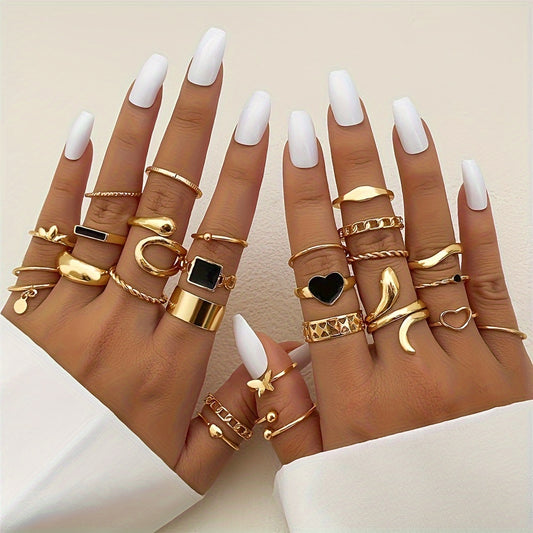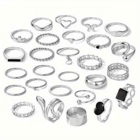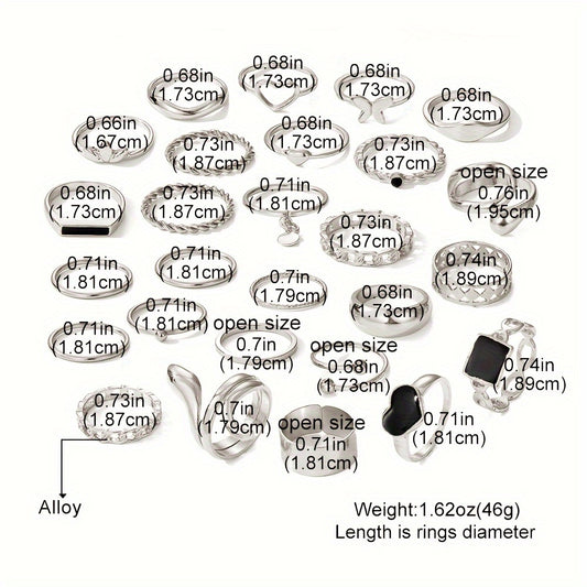 27pcs Punk Exaggerated Ring Set Trendy Patterns Y2k Vintage Style Animal Elements Mix And Match For Party And Daily Decor