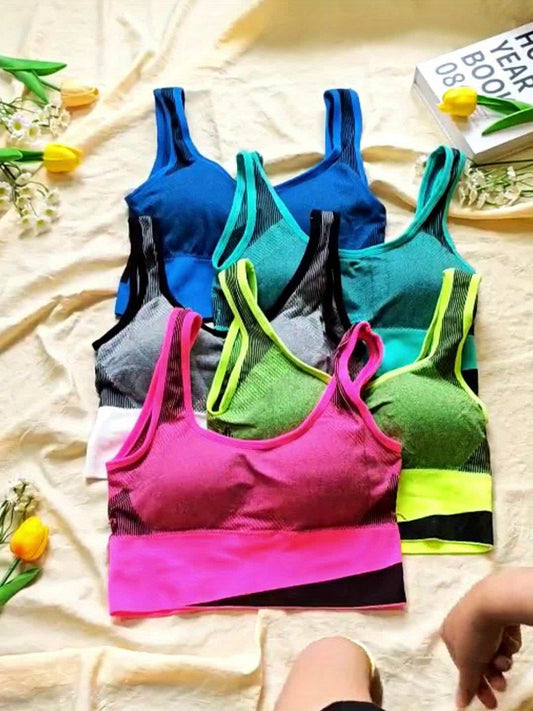 Single Piece Women's Color-Matching Sports Bra without Steel Ring, Technology-Feeling Bra with 5 Colors Available for Inner and Outer Wear, Suitable for Multiple Scenes in Four Seasons