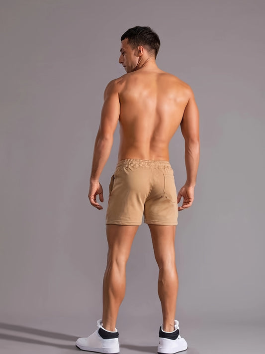 Slim Fit Comfy Active Shorts, Men's Casual Slant Pocket Stretch Waist Drawstring Shorts For Summer Basketball Running