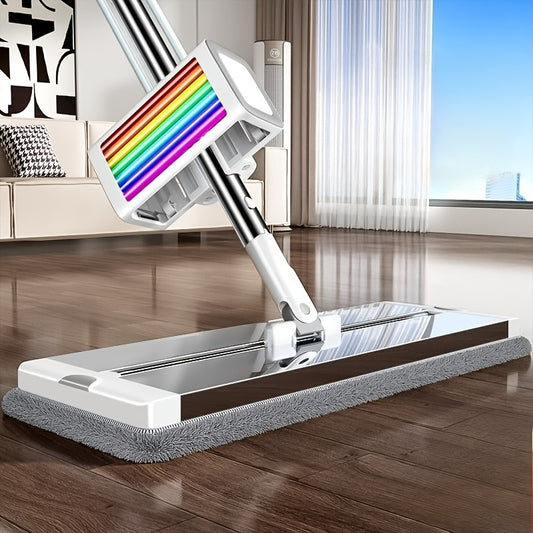 360° Rotating Mop and Bucket Set with Built-in Wringer, Dual Use for Dry & Wet Cleaning Without Handwashing, 6pcs Reusable Pads Included, Stainless Steel Headboard Handle Suitable for Bedroom, Living Room Pet Hair Removal -
