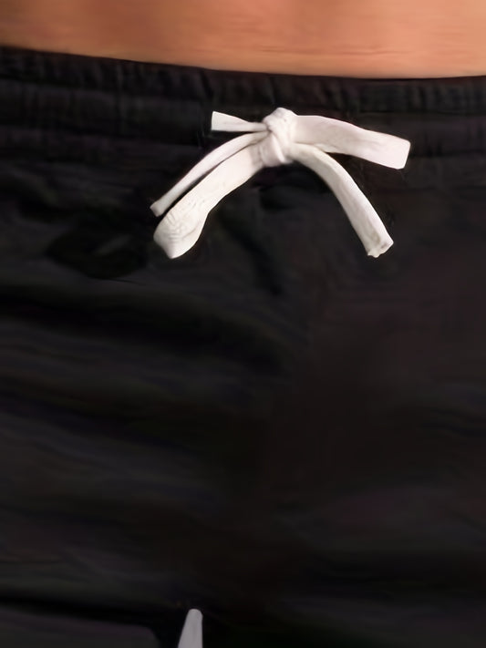 Men's Quick-Dry Swim Shorts with Adjustable Drawstring Waist & Pockets - Sporty Solid Black Beach Shorts for Swimming, Surfing, Water Sports - Machine Washable Regular Fit, Swimming Gear | Sleek Construction