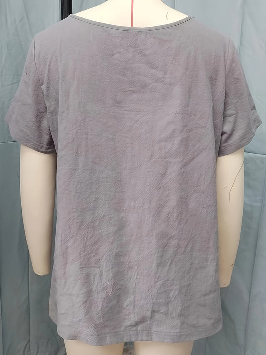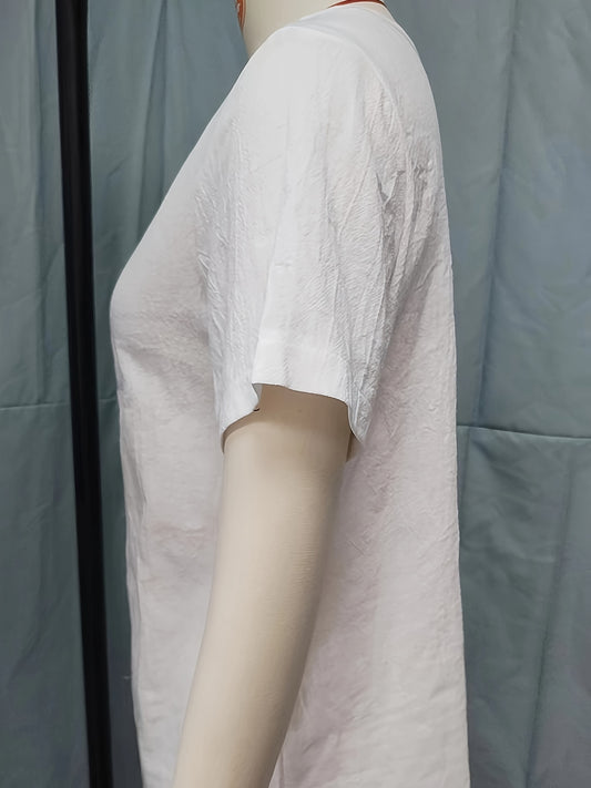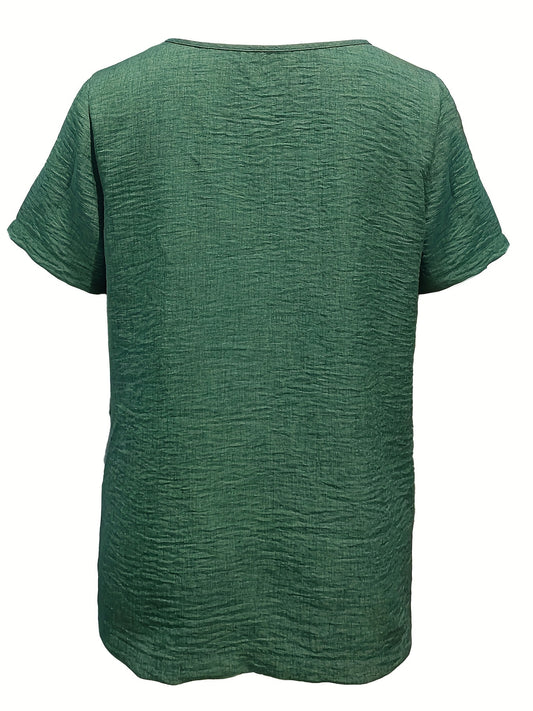 Solid V-neck Simple Blouse, Versatile Short Sleeve Blouse For Spring & Summer, Women's Clothing