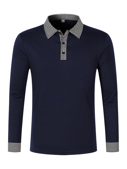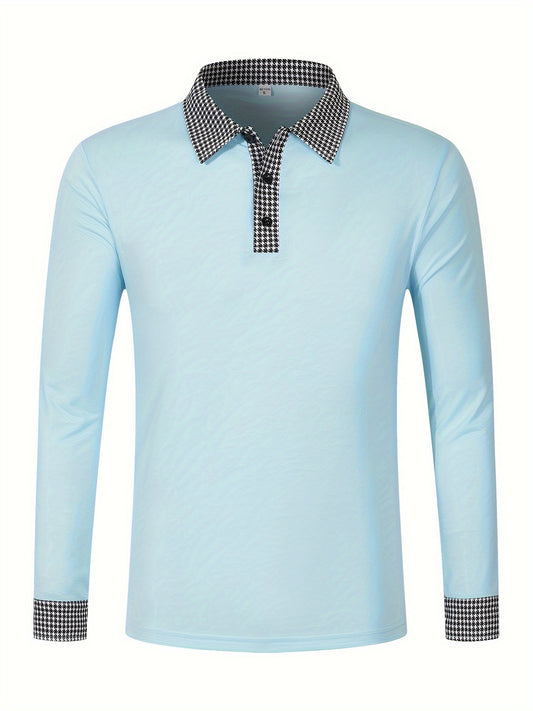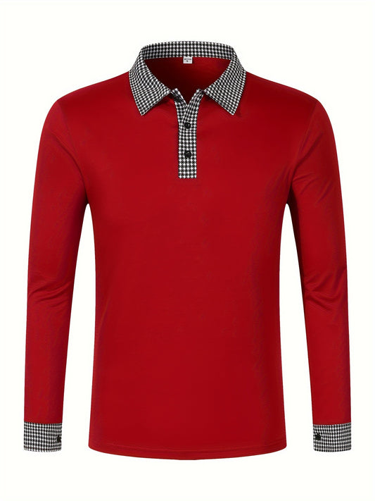 Men's Casual V-Neck Long Sleeve Rugby Shirt For Spring Autumn, Men's Clothing