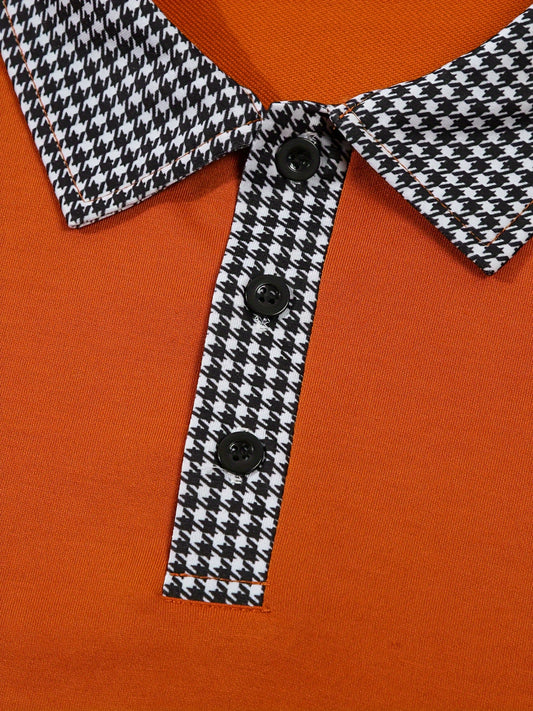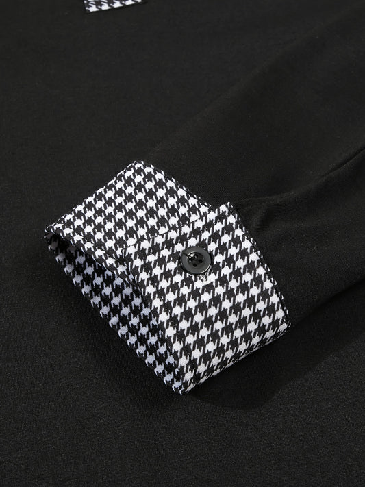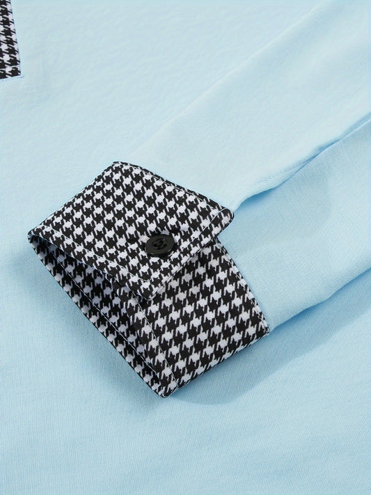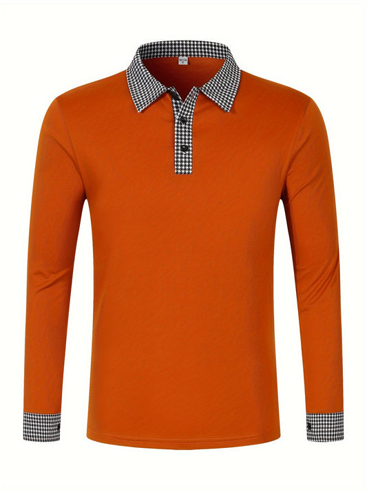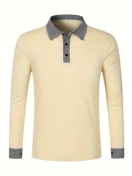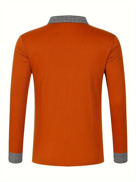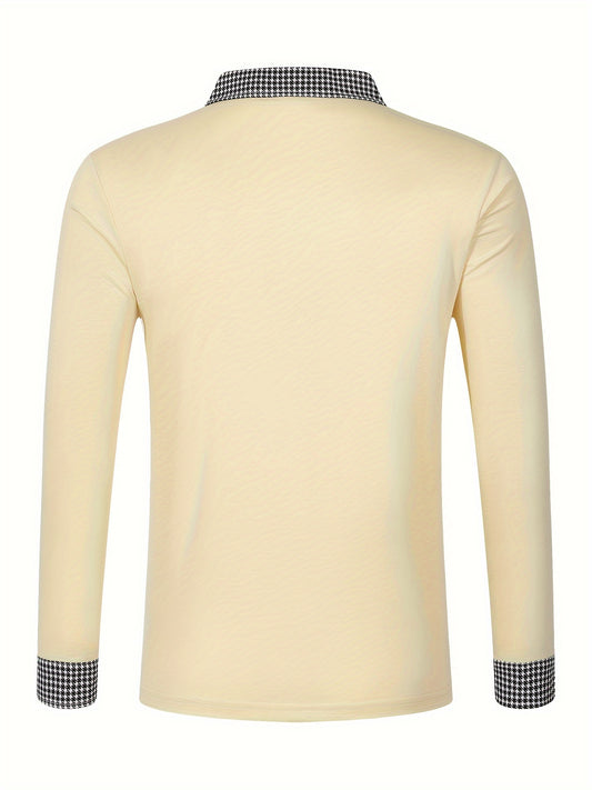 Mature Style Men's Casual Trim Contrast Button Long Sleeve Shirt, Spring Fall