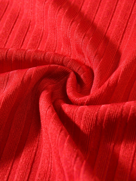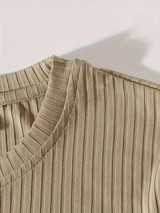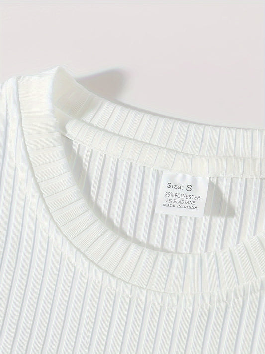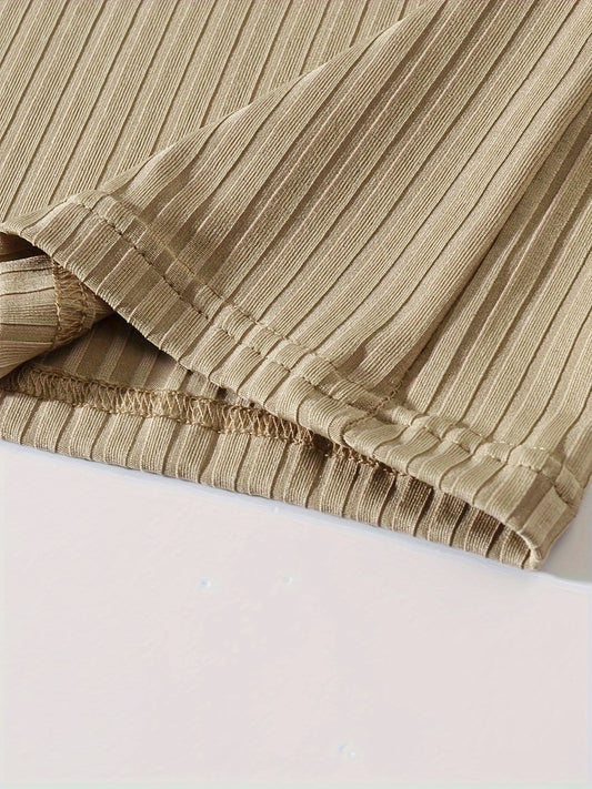 Ribbed Men's Casual Stretch Breathable Lightweight Long Sleeve Round Neck T-shirt For Spring Fall, Running Training