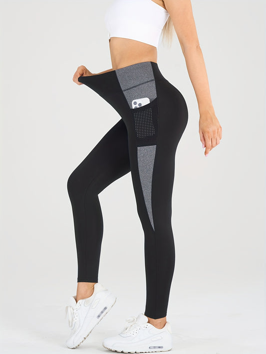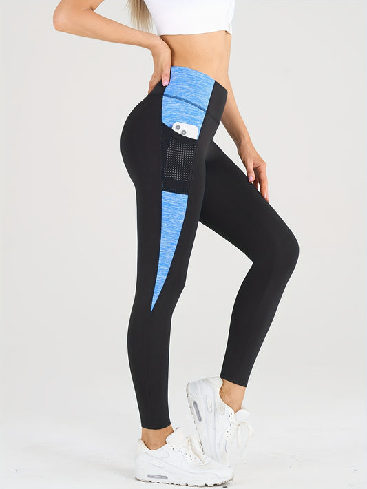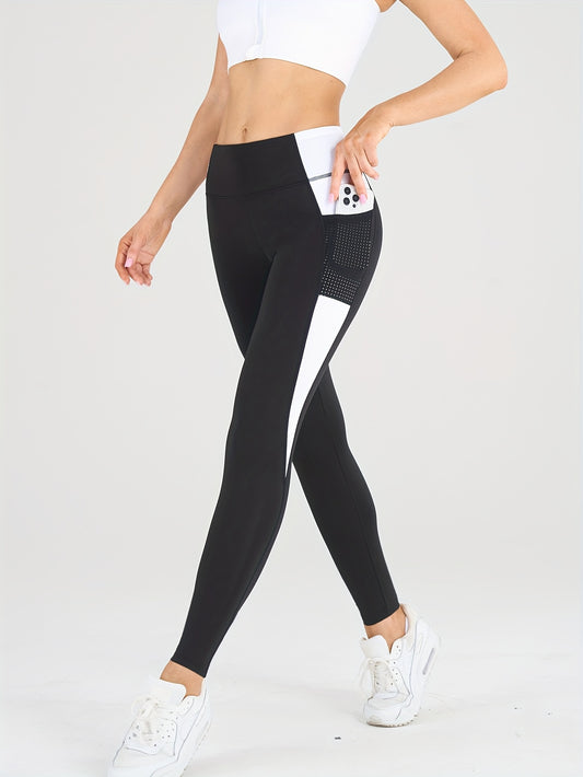 Women's Color Block Fashion Yoga Pants, Fitness Outdoor Sports Tights, Waist-Toning Butt-Lifting Compression Leggings, Comfortable Breathable Sweat-Absorbing Long Pants