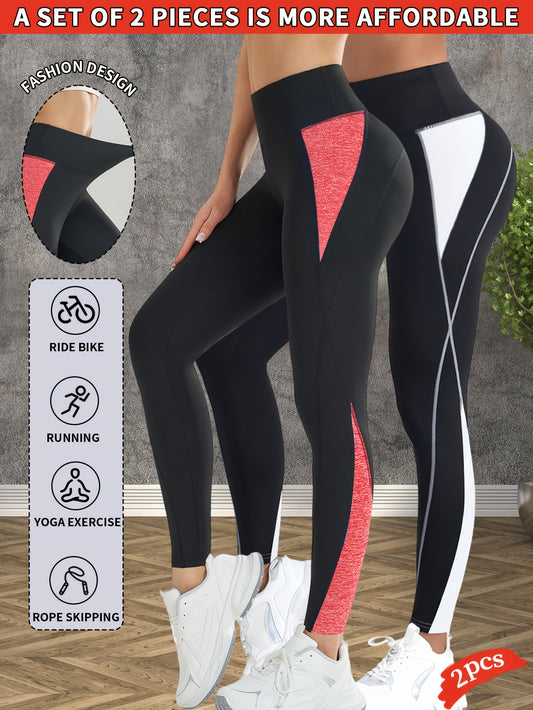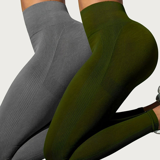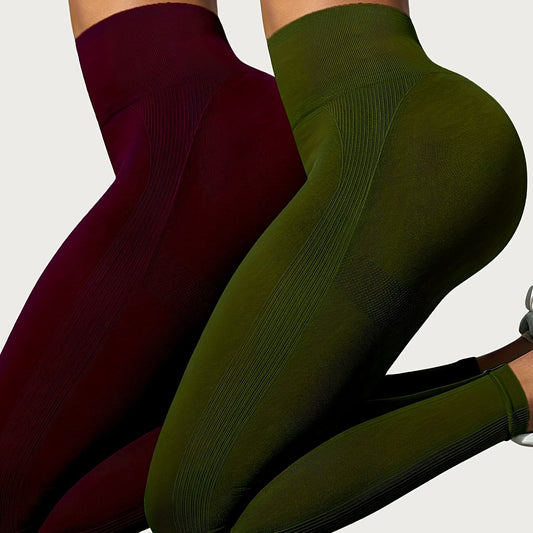 2pcs Women's High-Waist Yoga Leggings - Butt Lifting & Tummy Control, Breathable Stretch Fabric, Solid Color Workout Pants with Side Pockets for Outdoor Fitness