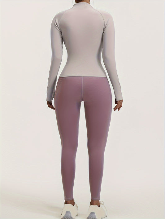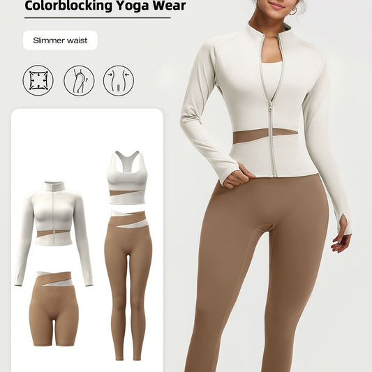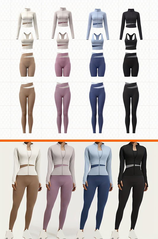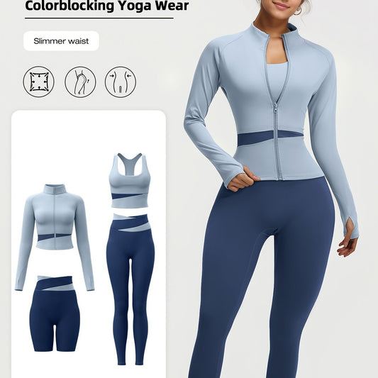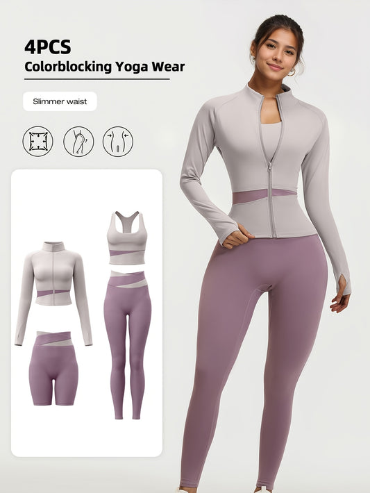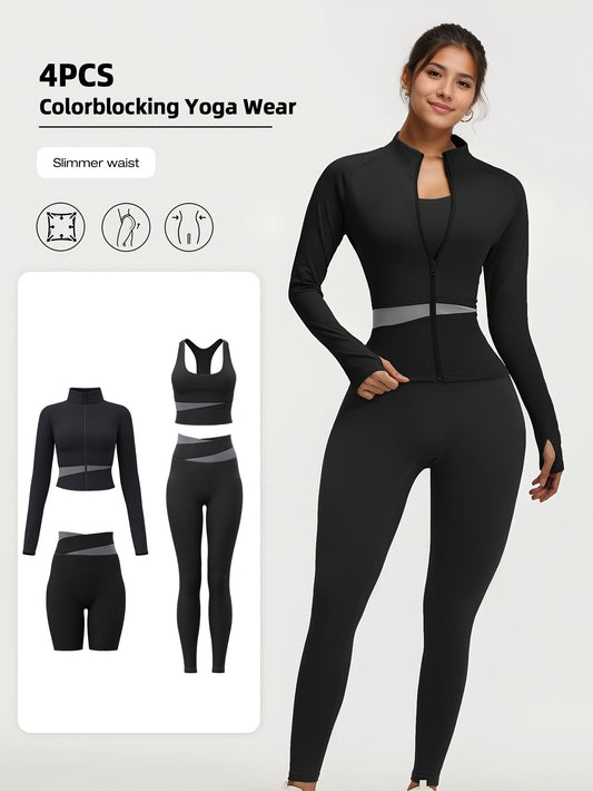 4pcs Women'S Yoga Wear Workout Set with Zipper Jacket Fitness Yoga Leggings Sports Bra Euro Size for Running Fitness And Yoga