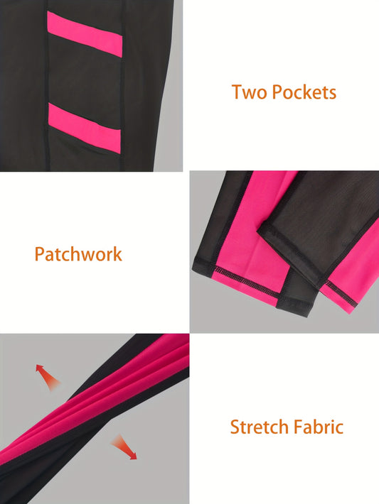 Women's High-Waisted Yoga Pants - Non-See-Through Tight Butt-Lifting Workout Leggings, Stretchy Yoga Pants with Side Compression for Gym, Running, Pilates - All-Season Fitness & Casual Athletic Pants, Gym Apparel, Colorblock