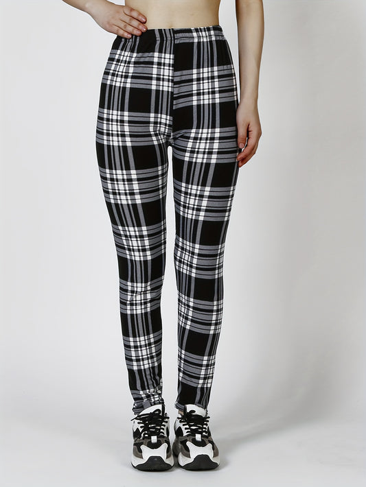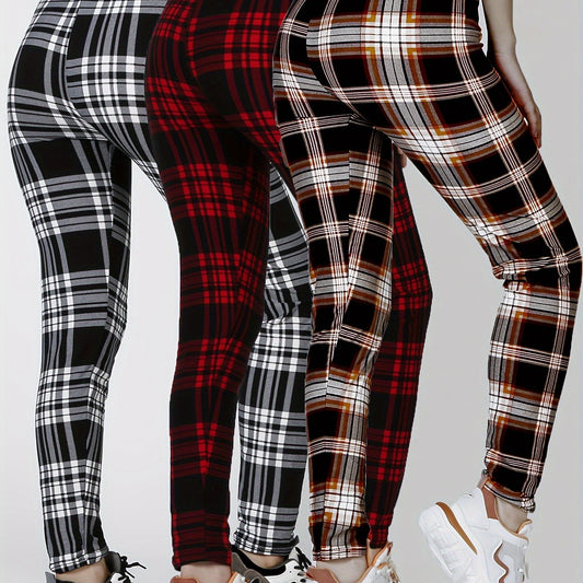 3 Packs Women'S Soft & Stretchy Tight Leggings - Black, White, and Red Plaid Patterns, High Waist, Elastic Waistband, Crop Length, Perfect for Fitness, and Casual Weekend Wear, Casual Wear Leggings|Plaid Pattern Leggings|Stre