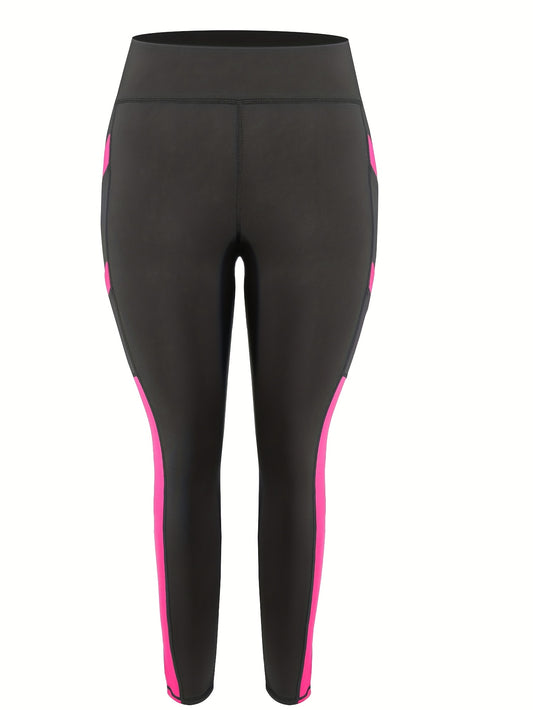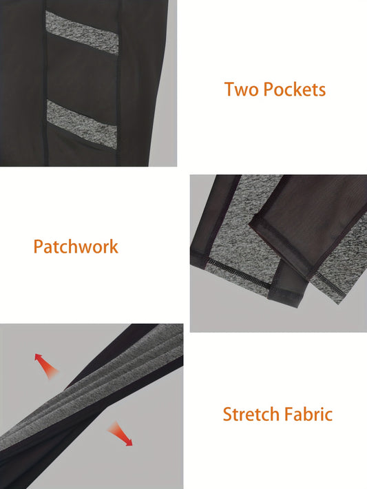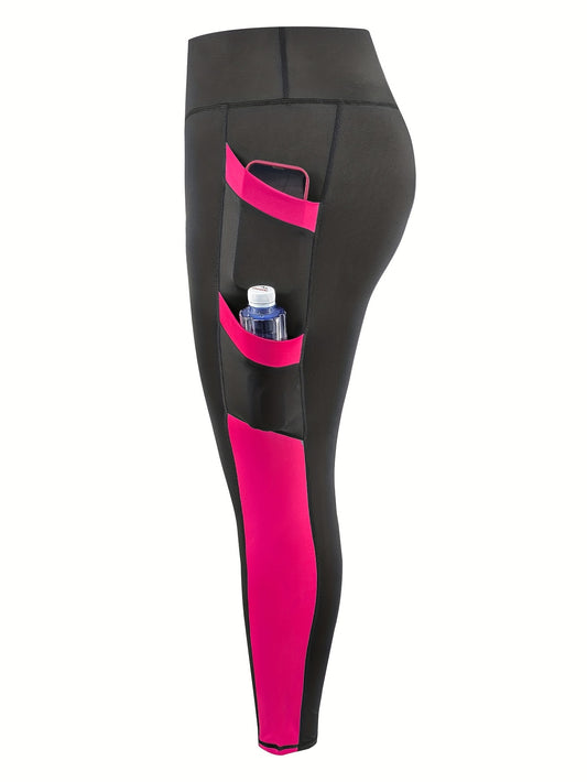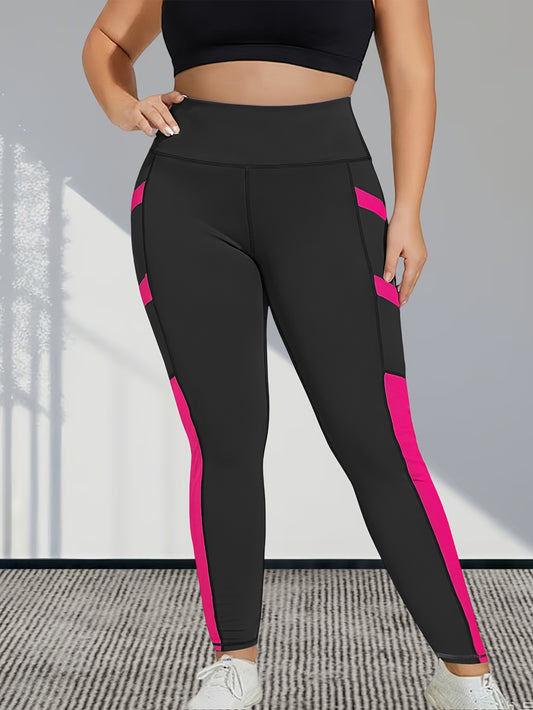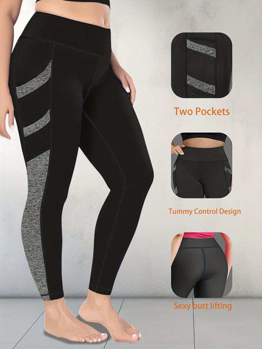 Plus Size Women's High-Waisted Tummy Control Yoga Leggings - 4-Way Stretch Workout Pants with 4 Side Pockets, Butt-Lifting Posture & All-Season Wear for Gym, Running, - Non-Sheer Opaque Fitness Pants (Black/Grey)
