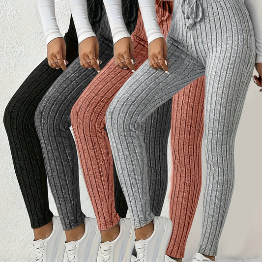 4pcs Women'S High-Waisted Leggings - Sexy Ribbed Design, Stretchy & Comfortable, Solid Colors (Black, Green, Purple, Beige) for Fall/Winter, Perfect for Running & Casual Wear, High Waisted Leggings