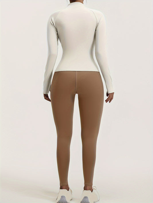 2pcs Women'S High-Waisted Stretchy Leggings with Drawstring Waist & Zipper Pockets - Lightweight Breathable Fabric for Jogging, Cycling, - All-Season Casual, Jogging Pants, Leggings, Sleek Design, Comfortable Fit
