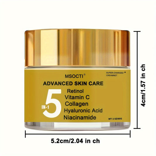 1pc MSOCTI Advanced 5-in-1 Anti-Aging Cream for All Skin Types - Moisturizing Face Cream with Retinol, Vitamin C, Collagen, Hyaluronic Acid, Niacinamide - Alcohol-Free, Firming & Repairing Skin Care