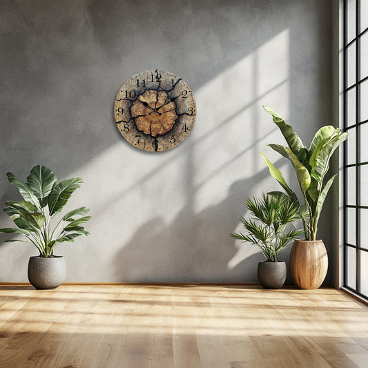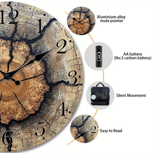 1pc Fantasy Style Analog Wall Clock, Tree Stump Pattern Non-Ticking Clock, Suitable for Living Room, Bedroom, Dining Room Wall Decoration, Ideal Birthday, Easter, New Year Gift, AA Battery Powered (Not Included)