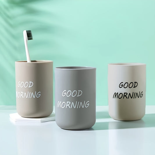1pc Minimalist Plastic Toothbrush Cup, "Good Morning" Printed Family Bathroom Rinse Mug, Creative Oral Care Cups, Toothbrush Cup