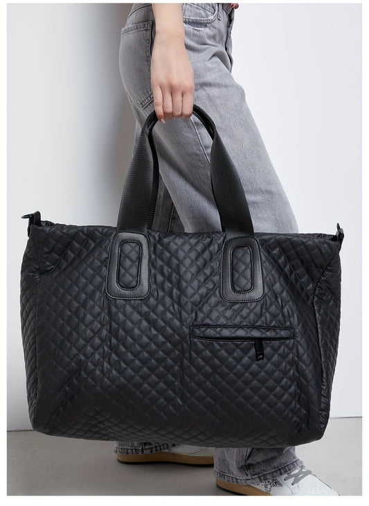 Women'S Fashionable Black Backpack with Diamond Pattern - Soft, Foldable, Zippered, Adjustable Shoulder Strap, Large Capacity, Versatile for Travel & Daily Commute, Casual Daypack|Stylish Backpack|Softshell Backpack