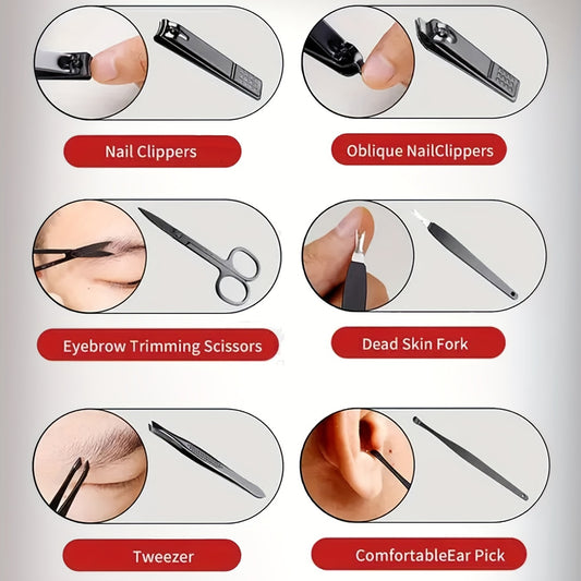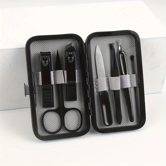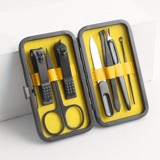 Manicure Set Nail Clipper Set Built-in Nail File Men's And Women's Personal Care Portable Travel Household 7-Piece Set Black Nail Scissors Grooming Tools Kit
