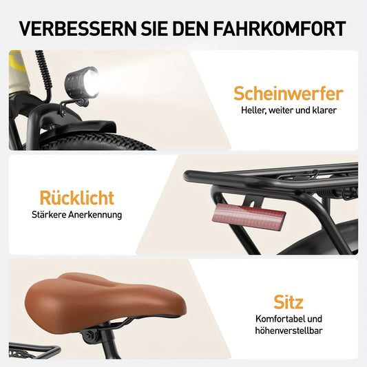Adult E-Bike, Max 55miles And 25 KM/H City Cruising E-Bike, 50.8cm Tire Mountain Bike Commuting Snow Bike, 468WH Removable Battery, 7 Speed E-Bike, Front Suspension Bike with 6 Styles Of Hex Wrenches, 1 Screwdriver, And 2 Typ