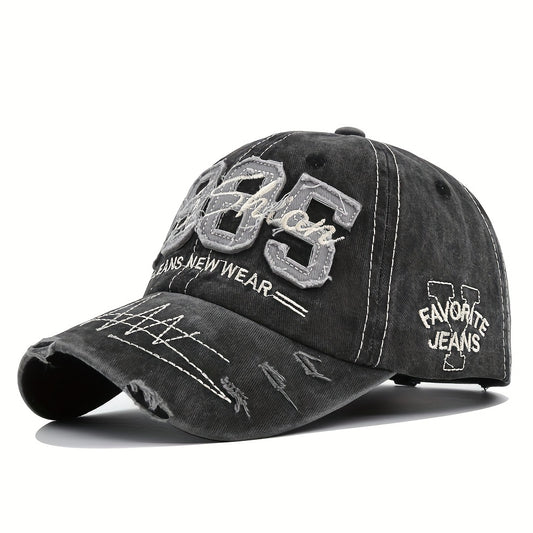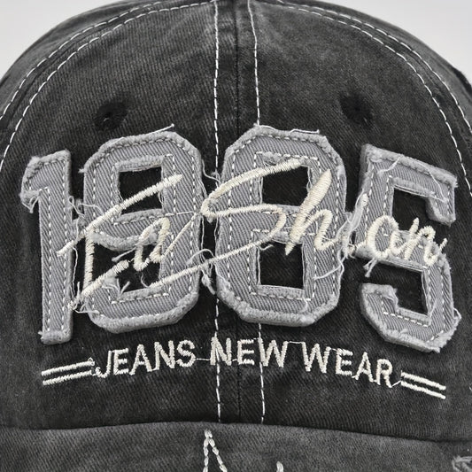 1985 Embroidery Ripped Baseball Cap Washed Distressed Patch Adjustable Dad Hat Vintage Lightweight Sunscreen Sports Hat