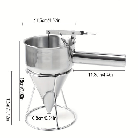 1pc, Stainless Steel Piston Funnel, Octopus Balls Tools With Rack, Batter Dispenser Cake Decorating Tool, Funnel Dispenser With Stand For Takoyaki And Baking, Kitchen Utensils, Apartment Essentials, College Dorm Essentials, B