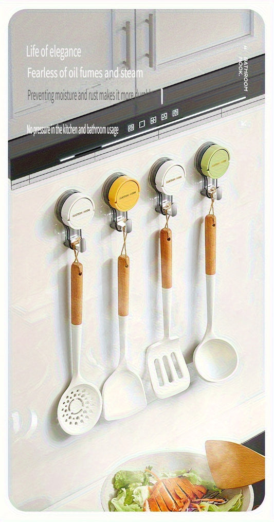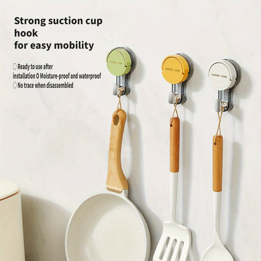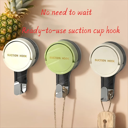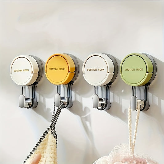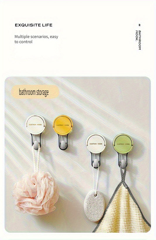5-Pack Heavy-Duty No-Drill Suction Cup Hooks with Strong Adhesive - Multi-Color (White, Green, Mint, Beige, Black) - Damage-Free Wall Hooks for Bathroom, Kitchen, Glass, Shower Doors - Plastic Hanging Organizers for Towels, U